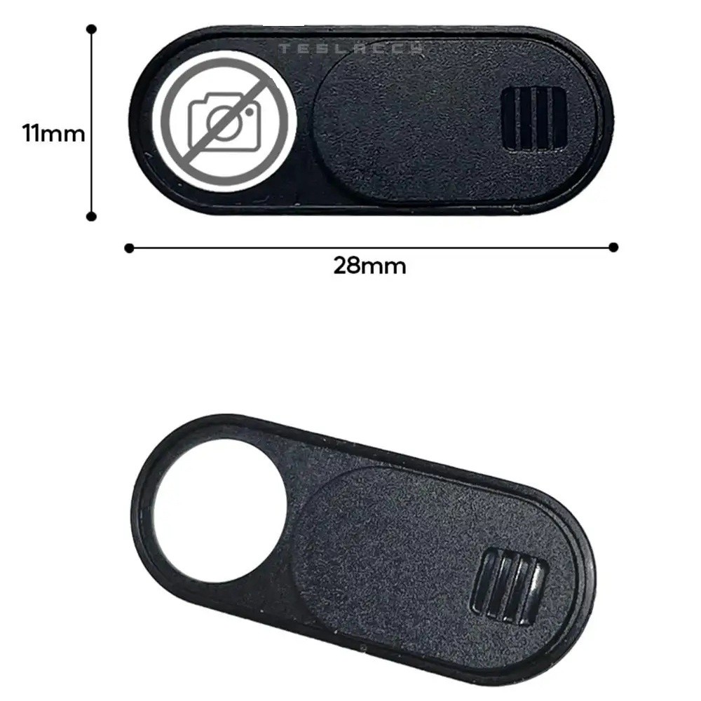Cubierta discreta que protege la privacidad bloqueando la cámara en vehículos Tesla, notebooks, tablets e iPads, fácil instalación y diseño compacto. Descripción completa
