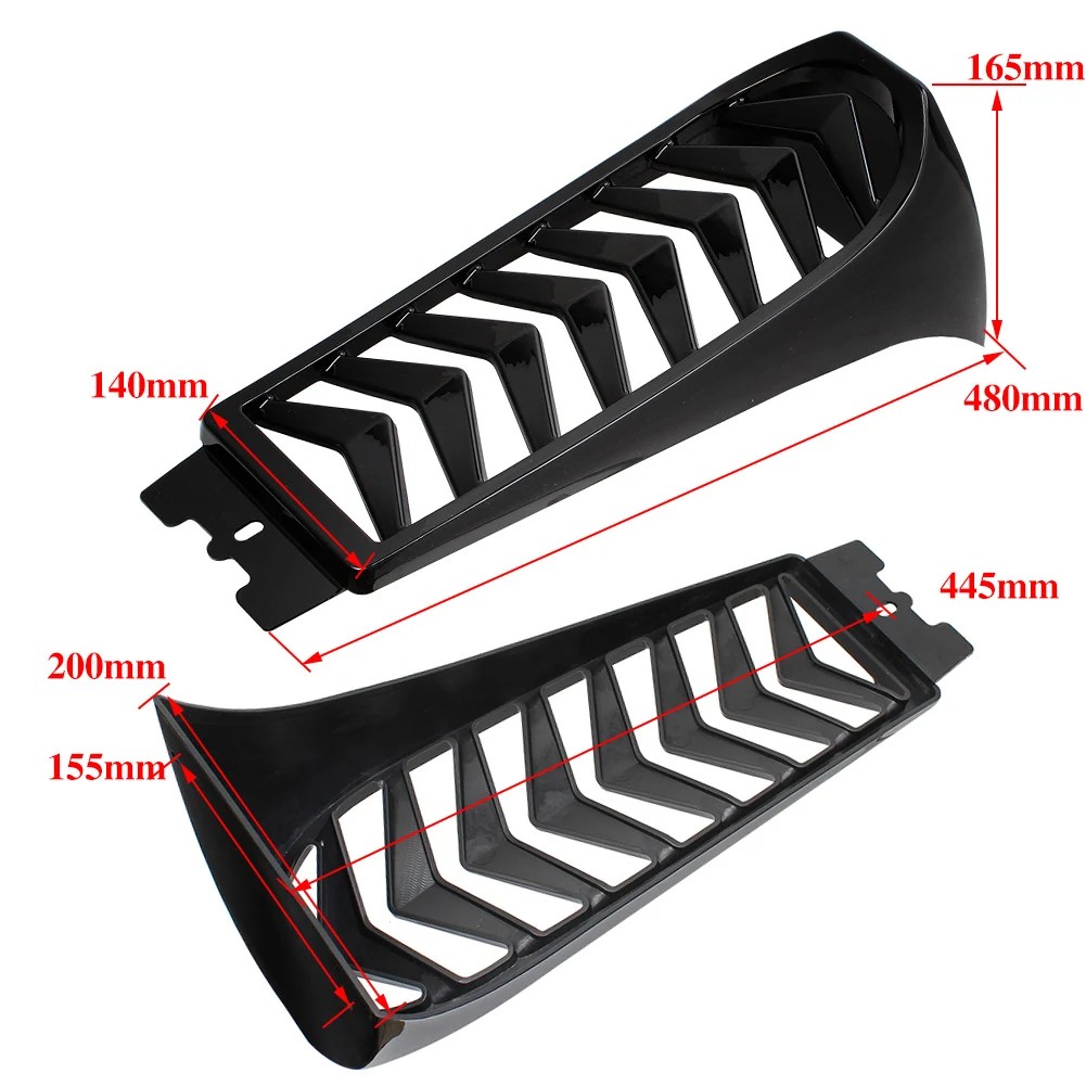 Cubierta del radiador negra brillante de ABS con lamas, dimensiones 480x165x140 mm y 445x200x155 mm, para Harley Softail 2018–2022. Descripción completa