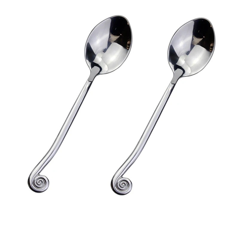 Elegante juego de cucharas de café de acero inoxidable que representa un complemento original para la mesa moderna. Su diseño único con mango en espiral en forma de caracol le da a los cubiertos una apariencia inusual que atrae la atención de inmediato. Gracias a la combinación de creatividad y calidad en la fabricación, estas cucharas son ideales tanto para el uso diario como para la presentación de bebidas en ocasiones especiales.