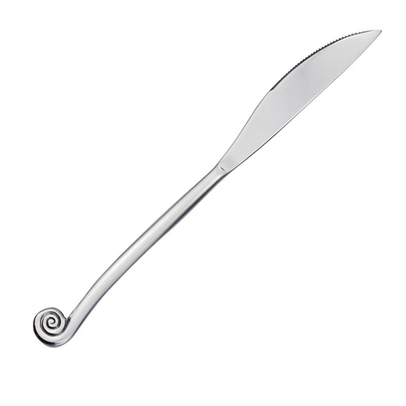Si buscas un cubierto de diseño original que combine material de calidad, estética y uso práctico, este cuchillo de mesa con mango en forma de caracol es la elección ideal para cualquier cocina.