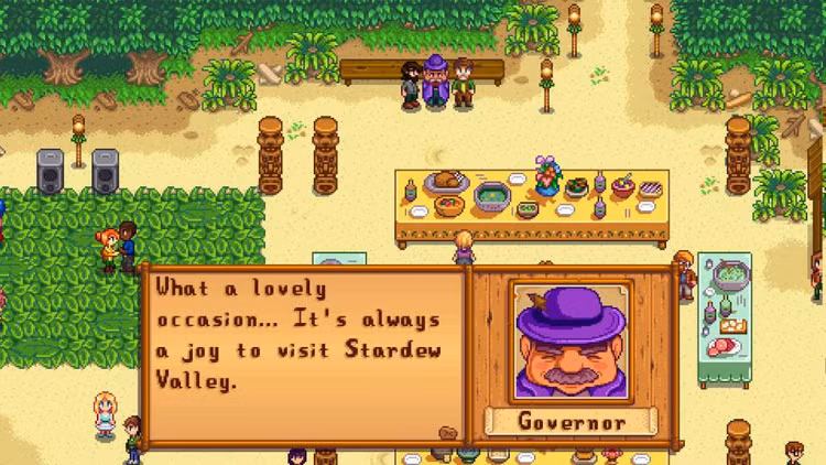 • Conviértete en parte de la comunidad local. Con más de 30 personajes únicos viviendo en Stardew Valley, ¡no tendrás problemas para encontrar nuevos amigos! Cada persona tiene su propio horario diario, cumpleaños, escenas cortas únicas y nuevas cosas que decir a lo largo de la semana y el año. ¡Cuando te hagas amigo de ellos, se abrirán a ti, te pedirán ayuda con sus problemas personales o te revelarán sus secretos! Participa en festivales estacionales, como el luau, el laberinto espeluznante y la fiesta de la estrella de invierno.