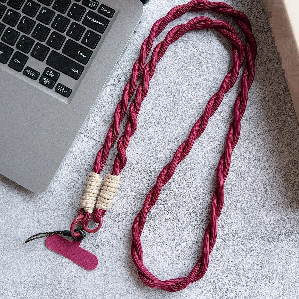 Este práctico accesorio es ideal para el uso diario del teléfono. Gracias a su construcción resistente y diseño estiloso, la cuerda se ve moderna y, al mismo tiempo, muy funcional. La correa para el teléfono al cuello asegura que siempre tengas el teléfono a mano y, al mismo tiempo, reduce el riesgo de que se caiga. También se puede utilizar como soporte para el móvil al viajar, fotografiar o pasear. Si buscas una solución práctica para llevar el teléfono de forma segura, esta cuerda trenzada para el móvil es una excelente opción.