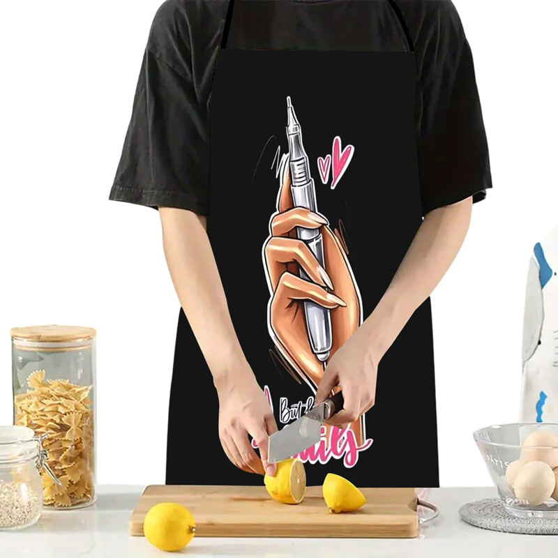 Práctico delantal para cocinar, pintar o cosmetología con diseño de uñas. Ideal protección de la ropa, fácil mantenimiento, diseño estiloso. Descripción completa