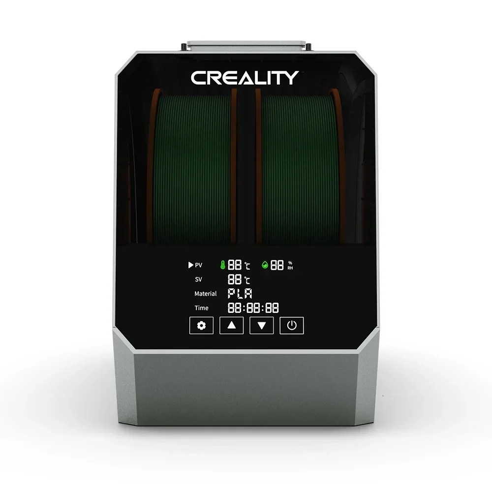 Este potente deshidratador está diseñado para usuarios que necesitan deshidratar de manera confiable dos bobinas de filamento simultáneamente. Gracias a su efectivo calentamiento y opciones de ajuste preciso, representa la solución ideal para eliminar la humedad, que afecta significativamente la calidad de impresión. Los filamentos expuestos a la humedad ambiental pueden agrietarse durante la impresión, generar hilos, disminuir la cohesión de las capas o provocar un flujo desigual del material. El deshidratador proporciona un ambiente estable y mantiene los filamentos en condiciones óptimas a largo plazo, lo que mejora significativamente los resultados de cada impresión.