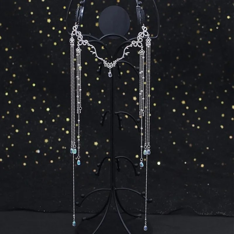 Diadema de boda con cadenas Adorno de cristal hecho a mano para la frente Corona con piedras preciosas Cadenas largas accesorio para el cabello La elegante diadema de boda es un accesorio para el cabello hecho a mano que le dará a cualquier peinado un aspecto romántico y excepcional. Las delicadas piedras de cristal y las cadenas decorativas crean un efecto deslumbrante con cada movimiento. El adorno está diseñado para llevarse cómodamente en la frente o en el cabello, realzando los rasgos del rostro. Gracias a su diseño elaborado, es ideal para novias, damas de honor y estilismos de noche festivos. Las largas cadenas colgantes son ligeras y elegantes, creando un suave efecto brillante a la luz. La diadema se combina fácilmente con el cabello suelto, trenzas o peinados recogidos. El acabado en plata universal se adapta a la mayoría de los vestidos de boda y de gala. El adorno también es adecuado para sesiones fotográficas, eventos temáticos o estilo festival.