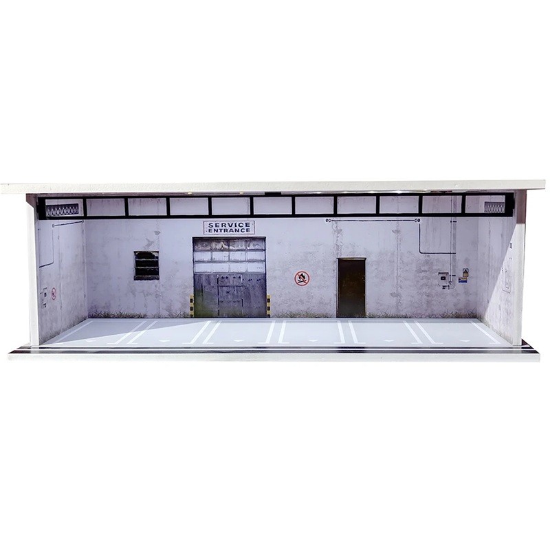 Diorama de exhibición garaje 30 x 13,5 x 10 cm Escala 1:64 Espacio de servicio con entrada técnica Vitrina de modelismo Escena de estacionamiento para modelos de autos