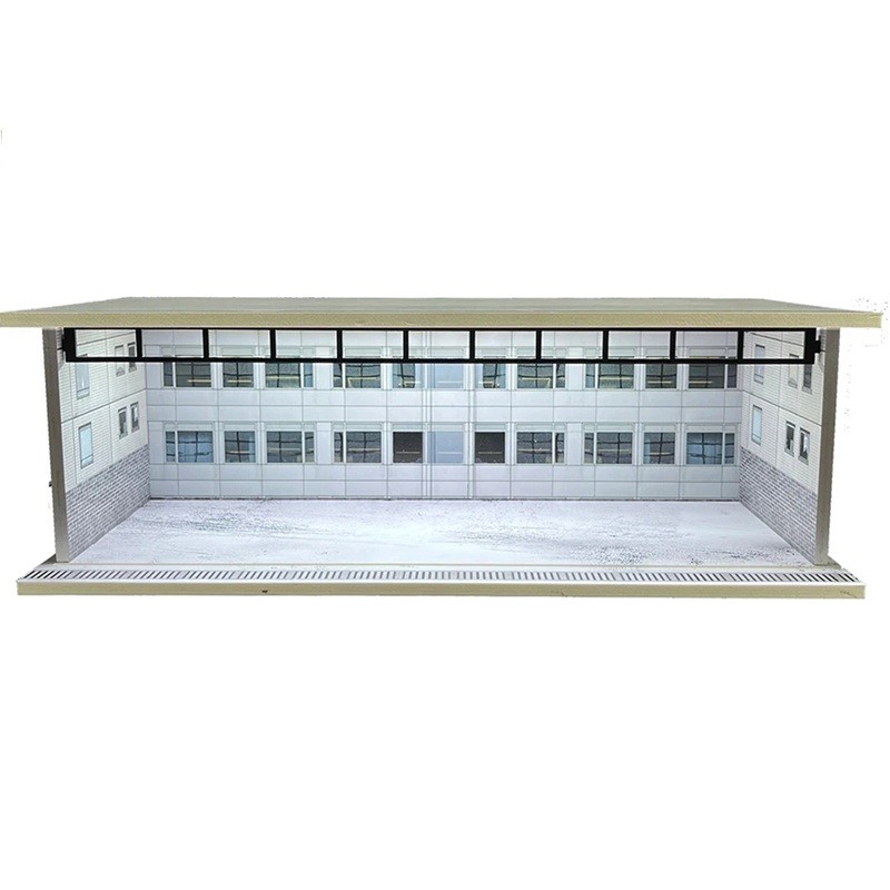 Diorama de exhibición garaje para modelos de coches 30 x 13,5 x 10 cm Escala 1:64 Edificio blanco con ventanas Escena de aparcamiento vitrina de PVC ABS modelo de colección