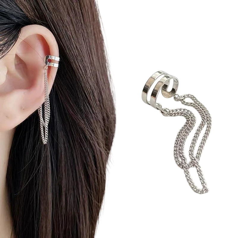 Doble arete con cadena para cartílago estilo punk moderno para mujeres apariencia hip-hop joyería de moda para fiesta Navidad boda cumpleaños Este moderno doble arete con cadena es un gran complemento para quienes aman el estilo punk y hip-hop. Gracias a su única combinación de cadena y diseño para el cartílago de la oreja, ofrece no solo un look de moda, sino también comodidad al usarlo gracias a los clips. Es ideal para diversas ocasiones, como fiestas, Navidad, bodas o cumpleaños, y se adapta al uso diario cuando deseas agregar un toque de extravagancia. Esta pieza estilosa resaltará tu estilo personal y atraerá la atención.