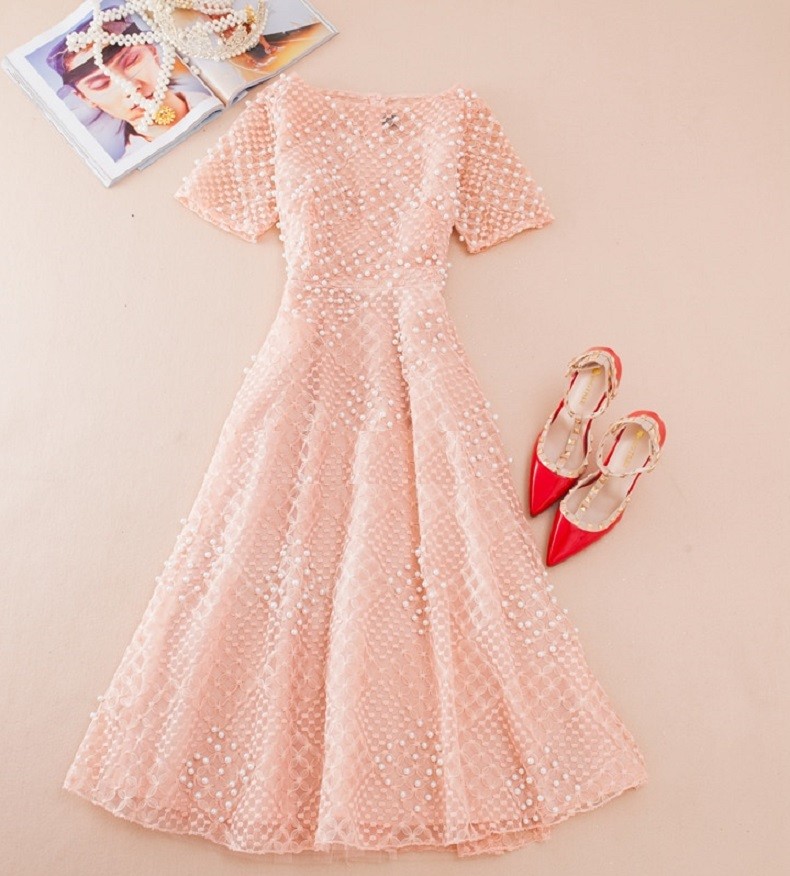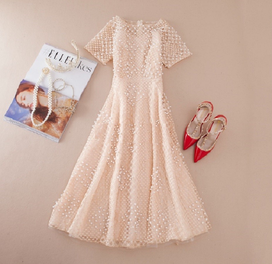 Elegante vestido de mujer con perlas.