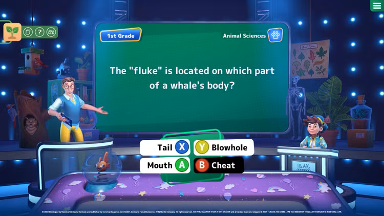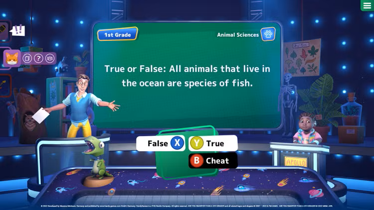 ¿Eres más inteligente que un alumno de 5º grado? es un ingenioso y divertido juego de preguntas y respuestas basado en la popular franquicia televisiva. Las preguntas de opción múltiple, los desafíos de verdadero o falso y los minijuegos pondrán a prueba tu conocimiento en 24 materias diferentes. Ante una pregunta difícil, siempre puedes contar con la ayuda de tus compañeros. Más de 6,800 preguntas sobre temas como ciencias de los animales, vocabulario, matemáticas y más, son presentadas por un elenco de personajes variado, completamente expresados y animados. Supera cada desafío solo o junto a familiares y amigos en un emocionante juego cooperativo multijugador para demostrar que realmente eres más inteligente que un alumno de 5º grado!