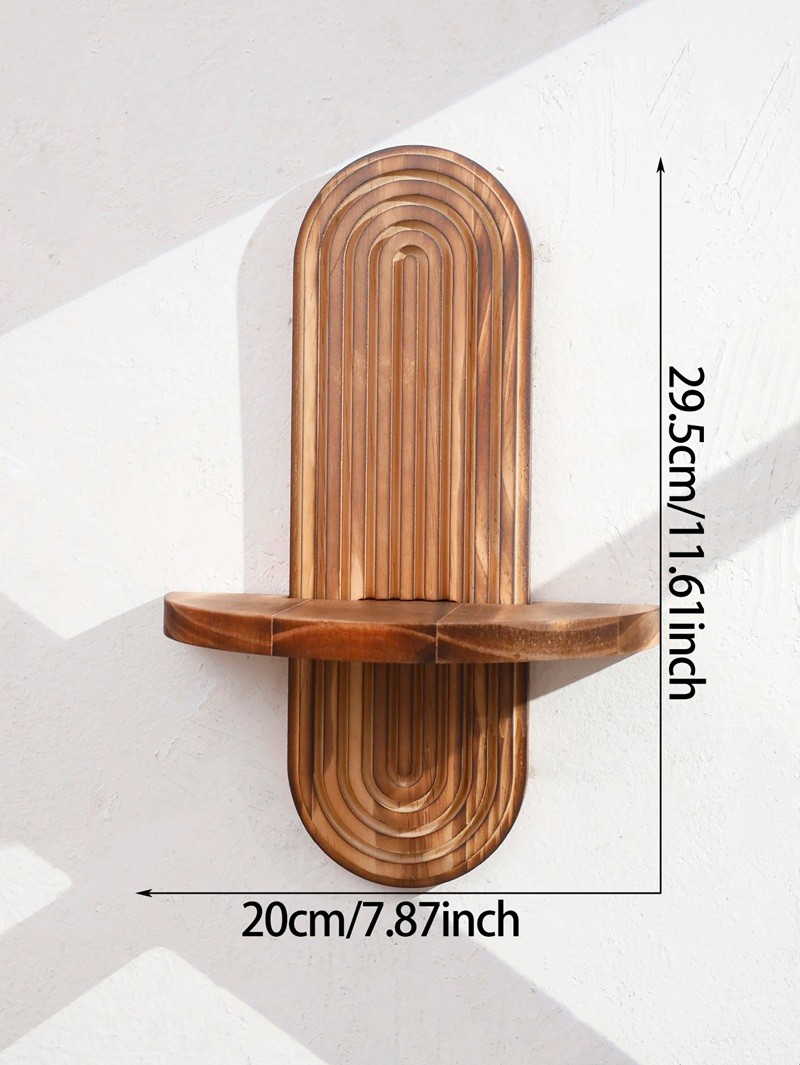 Estante de pared de madera estiloso con decoración arqueada ahorra espacio y crea un espacio práctico y decorativo para pequeños objetos. Descripción completa