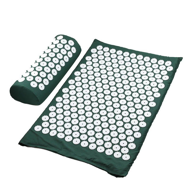 Esta esterilla y almohada de acupresión son ayudas prácticas basadas en los principios de la medicina tradicional. Hay almohadillas de acupresión sobre el tapete, cada una de ellas compuesta por agujas adicionales. Esto les permite estimular puntos de acupresión importantes, lo que puede ayudar a reducir el dolor y promover la relajación .