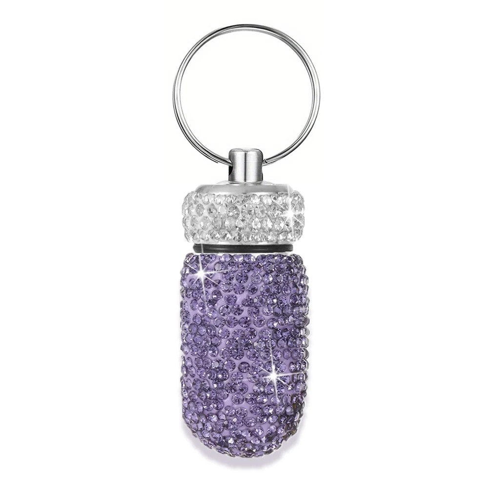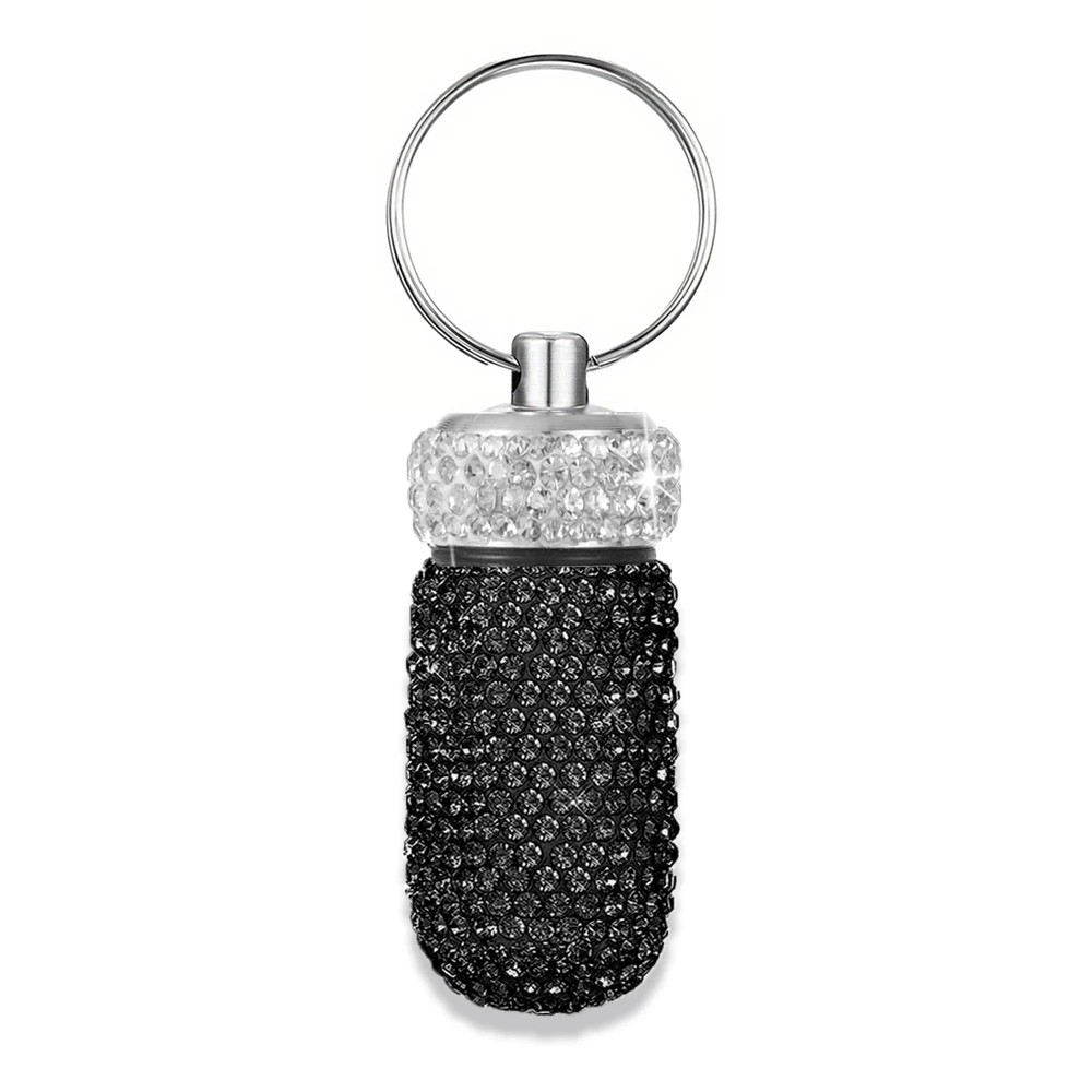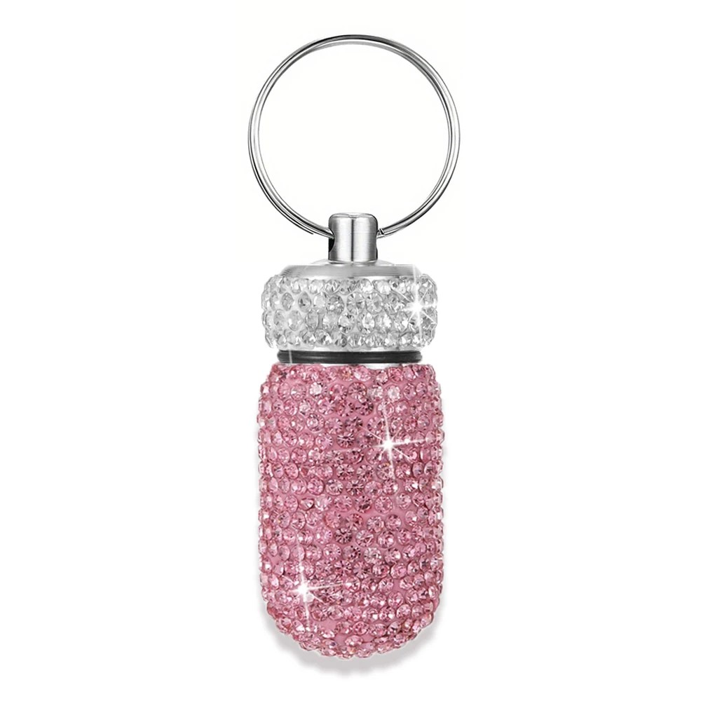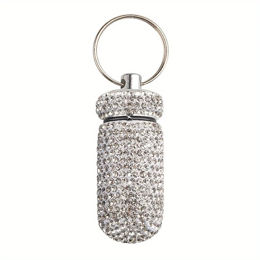 Estuche para pastillas con piedras 4,4 × 2 cm aleación de aluminio llavero para transportar medicamentos y pequeños objetos