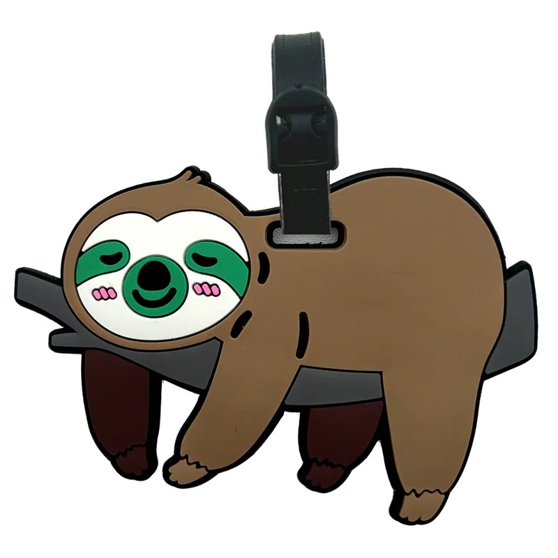 Etiqueta de equipaje con diseño de perezoso 9 cm PVC marrón-verde identificador para maleta o bolsa de viaje