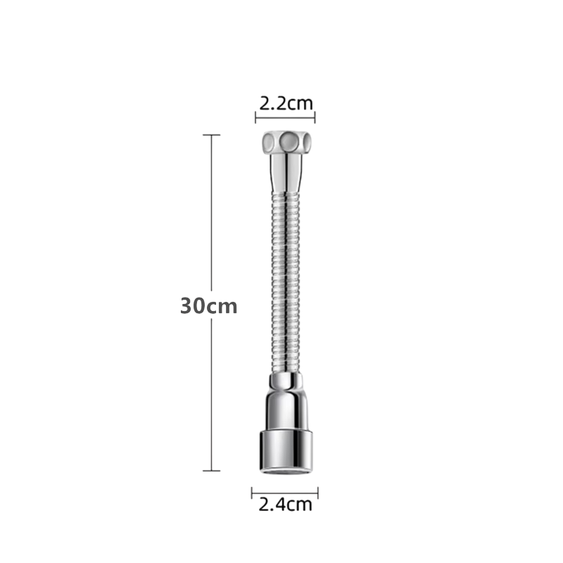 El cuerpo del extensor está hecho de acero inoxidable, que está diseñado para un uso prolongado en entornos de cocina. Este adaptador está concebido como un accesorio extensible universal para grifos de cocina, que se instala en el extremo del grifo.
