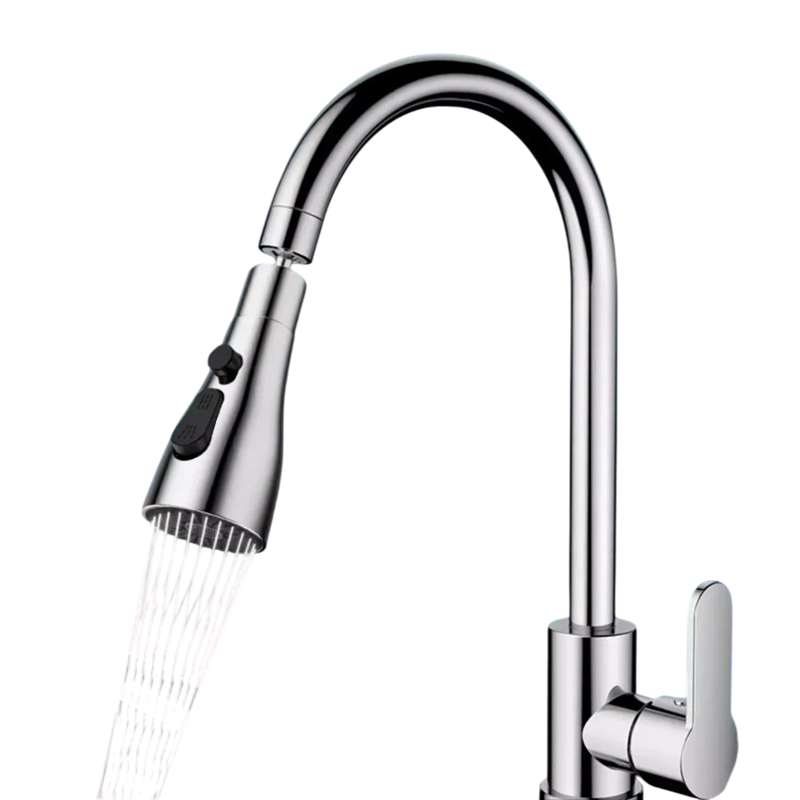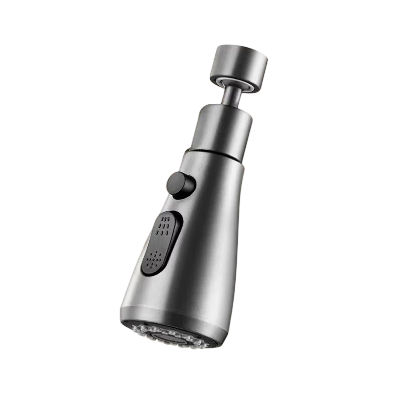 El cabezal permite girar 360°, lo que facilita dirigir el agua al enjuagar platos, limpiar el fregadero o llenar recipientes grandes. La construcción incluye un interruptor entre diferentes tipos de flujo de agua, lo que permite seleccionar el modo adecuado según la necesidad actual.