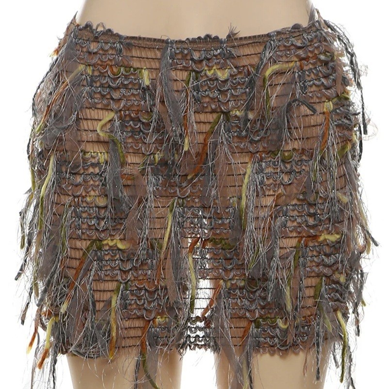 Una minifalda de punto transparente con borlas, ideal para la playa o fiestas, acentuará tu figura y le dará a tu atuendo un look sexy de verano. Descripción completa