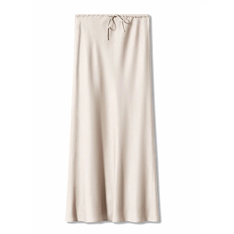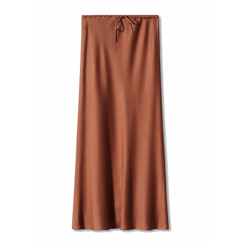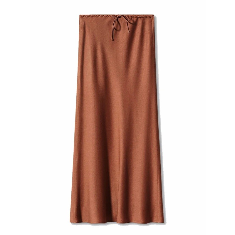 Una falda larga y brillante de satén fino con corte recto y cintura alta. Ideal para veladas elegantes, bailes y celebraciones. Descripción completa