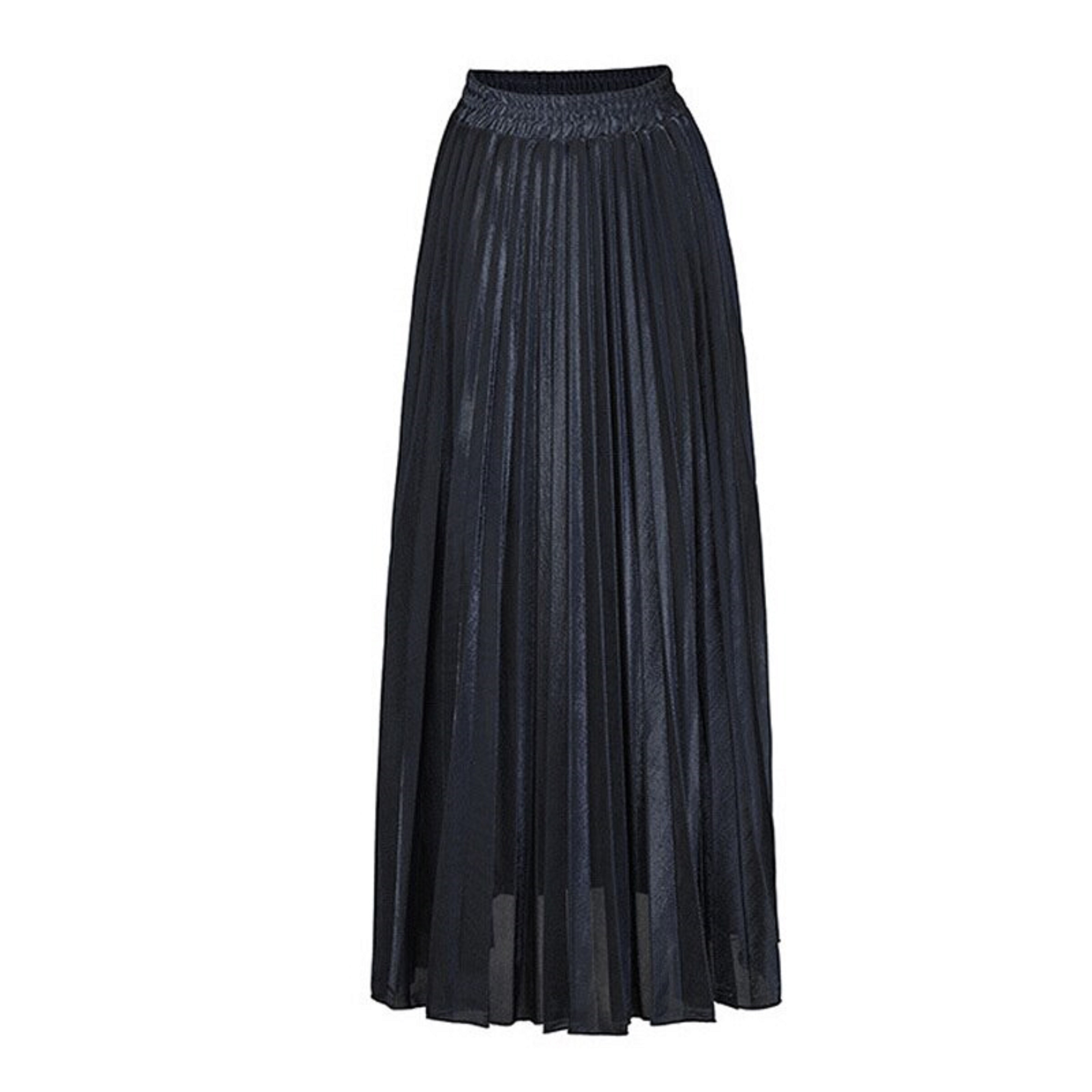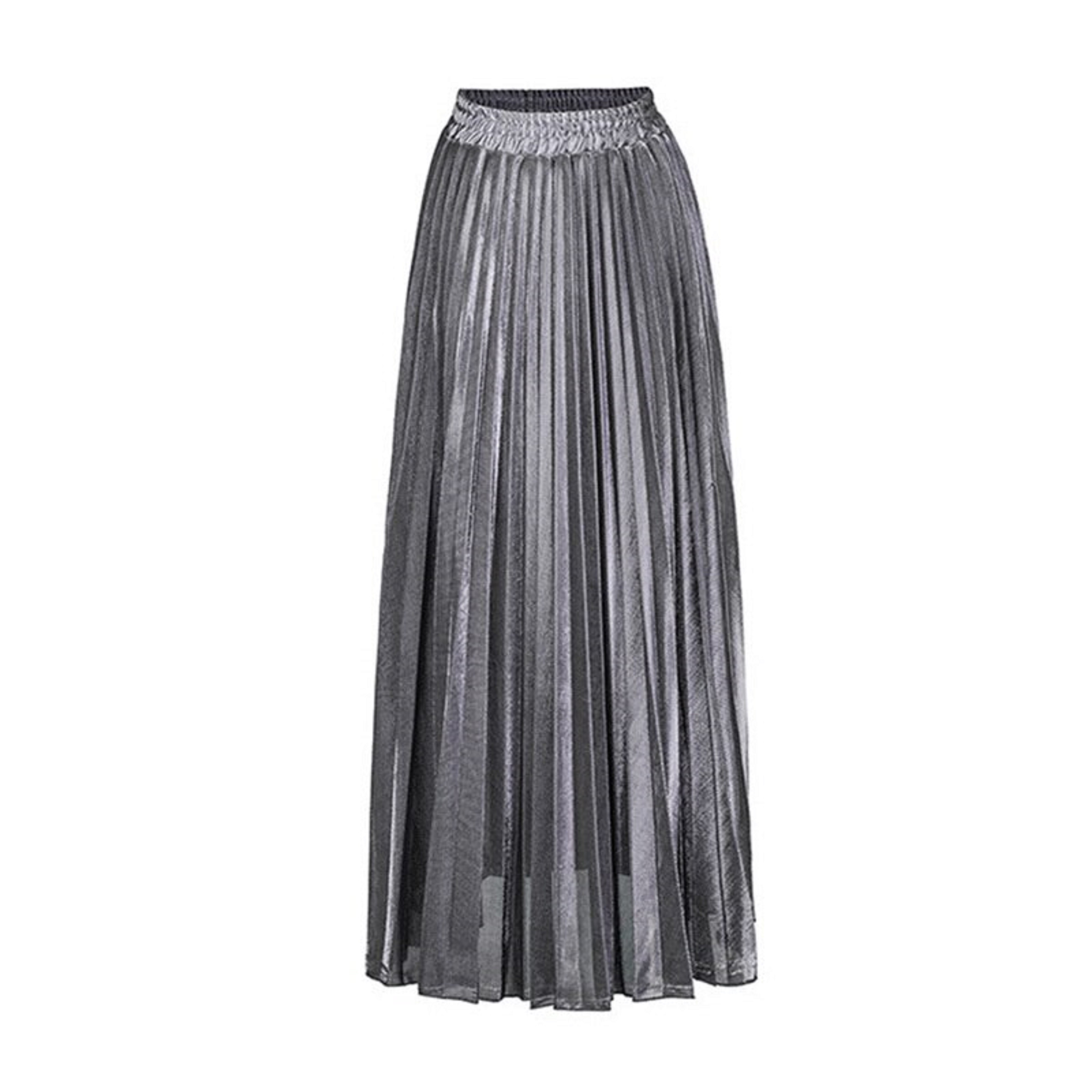 Falda plisada larga de mujer, brillante.