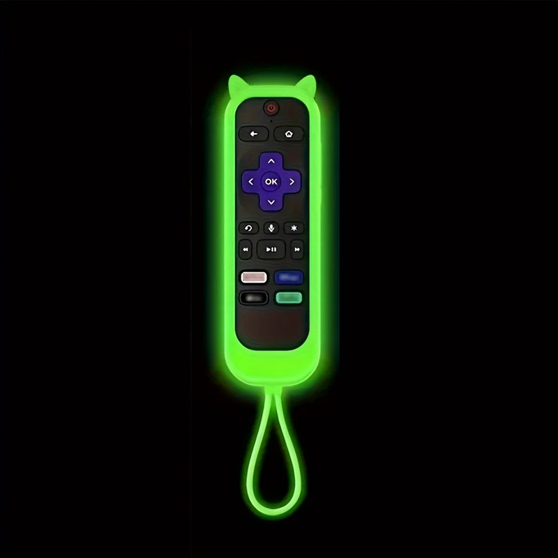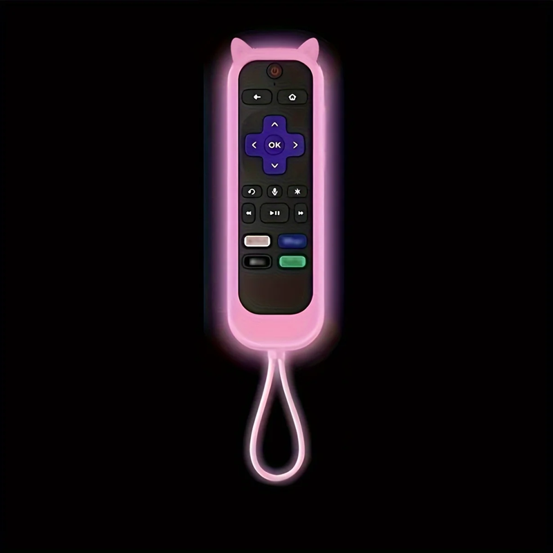 Funda de silicona para control remoto de 14 x 4,5 cm con diseño de orejas de gato que brilla en la oscuridad para TCL Hisense Roku TV, diseño antideslizante