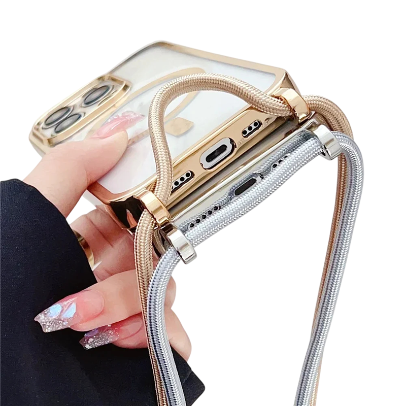 Funda para teléfono Crossbody con recubrimiento para iPhone 17 Pro Max Funda de plástico magnética con cordón para el cuello funda protectora