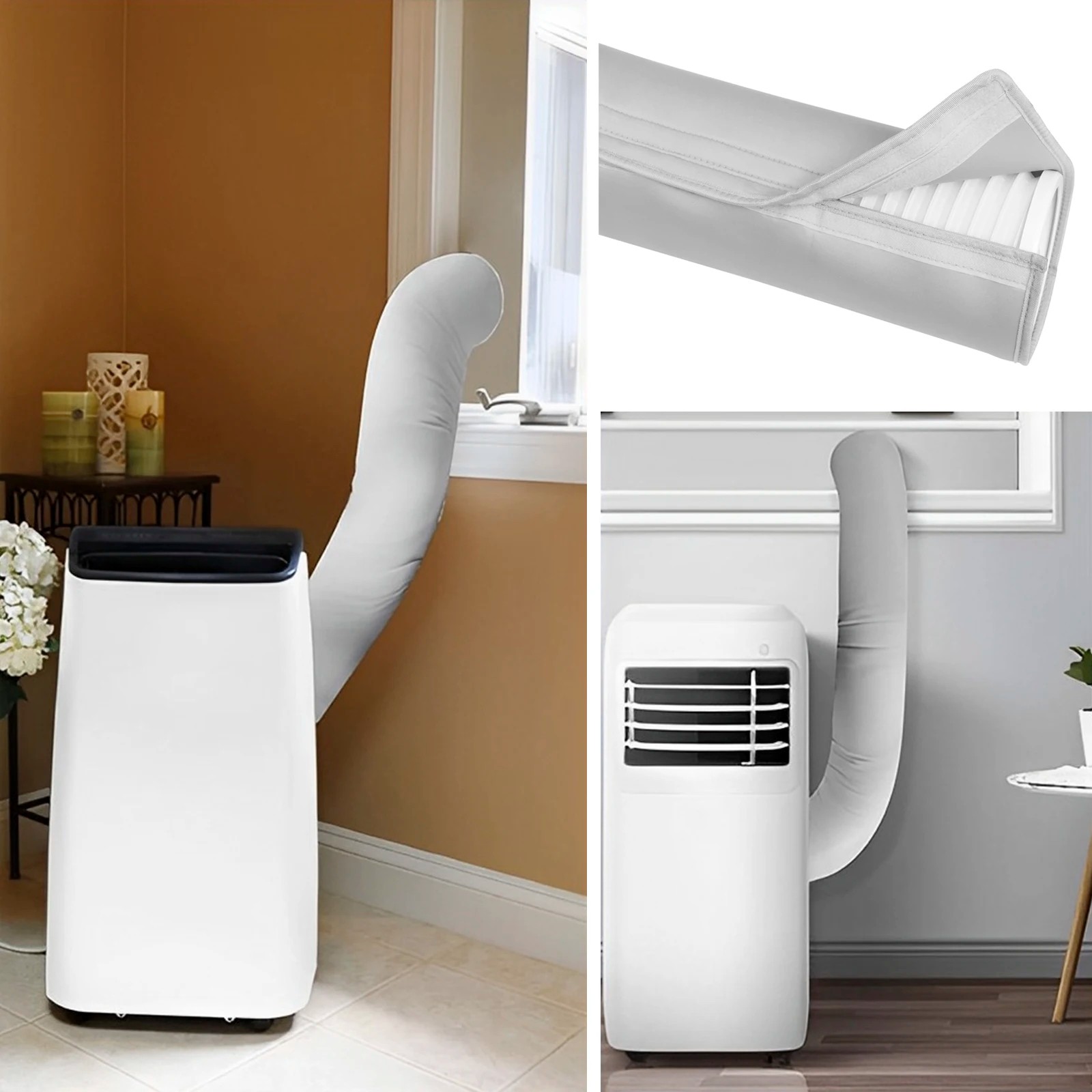 Esta funda protectora aislante para manguera de aire acondicionado de 150 x 53,3 cm está diseñada para aumentar la eficiencia del enfriamiento y reducir las pérdidas de energía causadas por el aire caliente dentro de la manguera de escape. La funda ayuda a bloquear la luz y el calor directos, limitando así significativamente el calentamiento de la habitación. Se puede usar durante todo el año, ya que protege la manguera de los rayos UV y prolonga su vida útil. Es adecuada para todos los aires acondicionados móviles comunes y unidades de pared con mangueras de escape de 12,7 cm (5") y 15 cm (5,9"). Gracias a su cierre de velcro universal y sus resistentes correas de nylon, la funda se ajusta perfectamente incluso en las curvas de la manguera y no se despega.