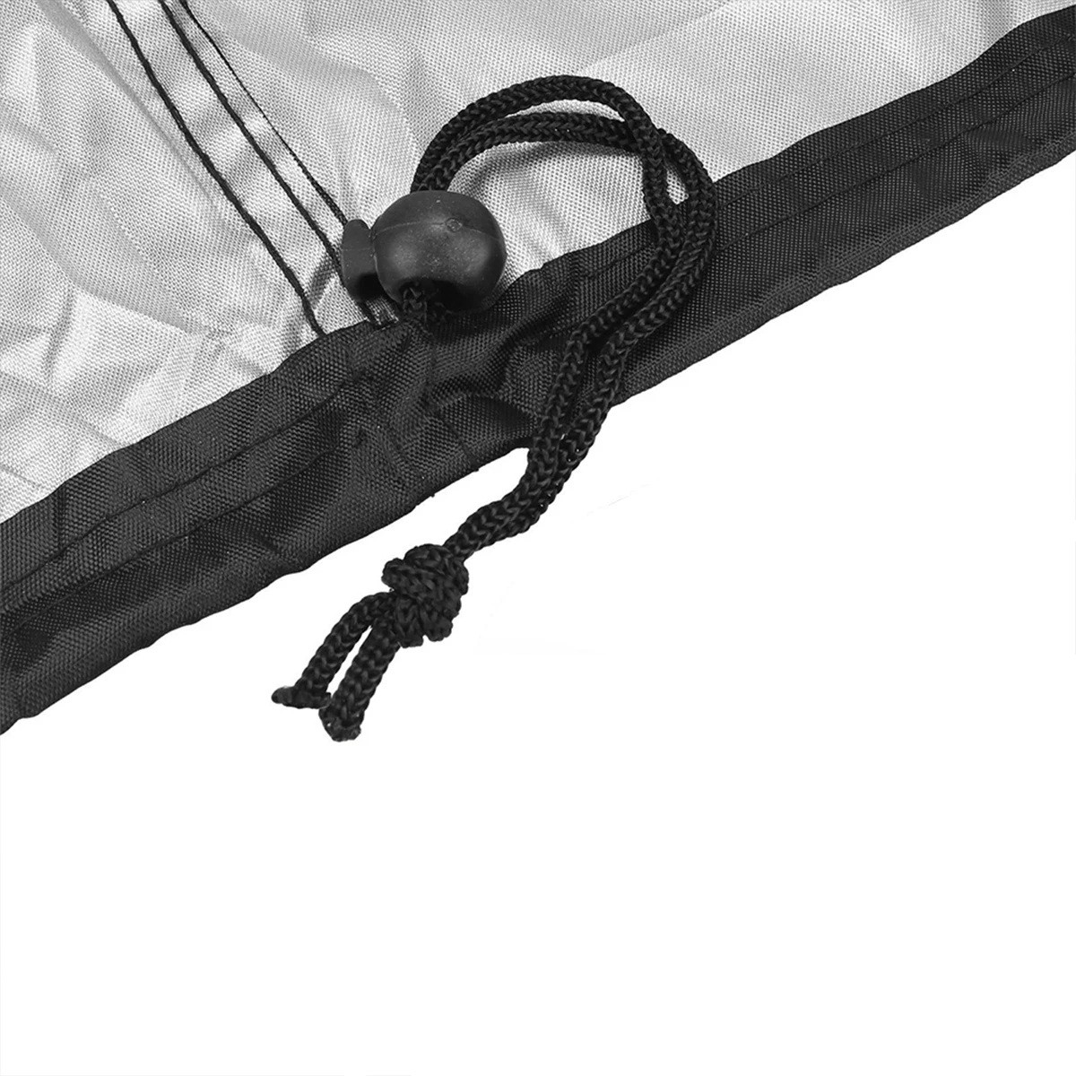 La funda está equipada con correas de ajuste con liberación rápida, que permiten un ajuste firme de la funda incluso con vientos fuertes. El dobladillo inferior tiene un cordón con seguro, que permite ajustar la funda para que se ajuste perfectamente a la estructura de la mesa. Esto evita que la funda se levante con el viento. La densa tela de nylon es resistente y fácil de limpiar: solo hay que limpiarla o enjuagarla con agua.
