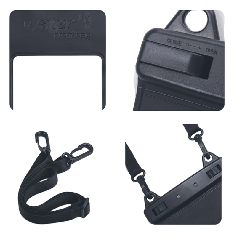 - Contenido del paquete: 1× funda transparente impermeable, 1× correa desmontable.