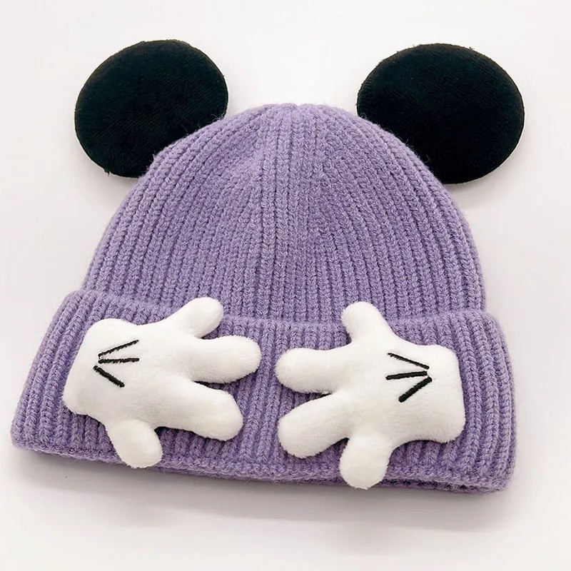 Gorro de invierno para niños con orejas de ratón y manos en 3D Edad 2–8 años Gorro de acrílico cálido Estilo animado Gorro infantil abrigado para invierno