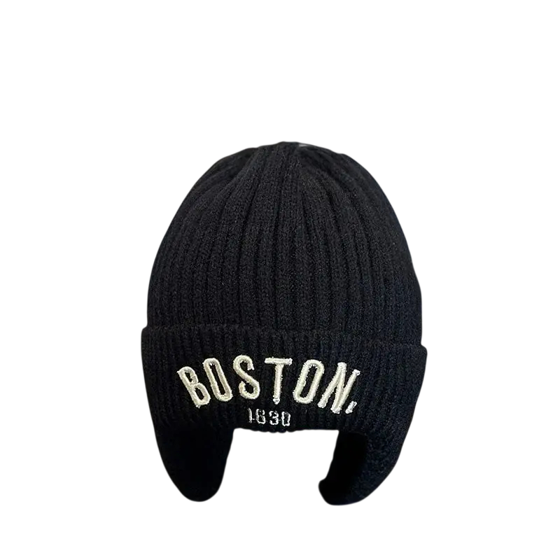 Gorro de invierno tejido para niños Boston 1–3 años Gorro de poliéster cálido con orejeras y bordado Gorro de invierno suave para niños