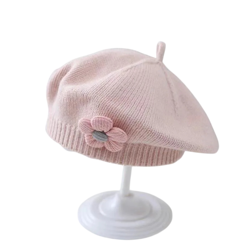 Gorro de invierno infantil adorable con detalle floral que abriga en climas fríos y complementa el atuendo con un elemento delicado y estiloso. Descripción completa