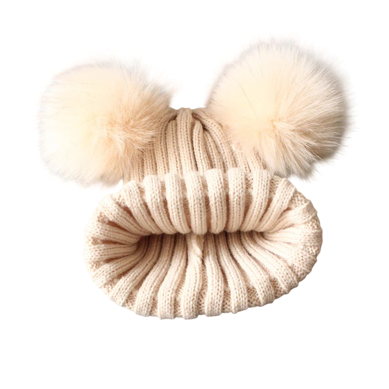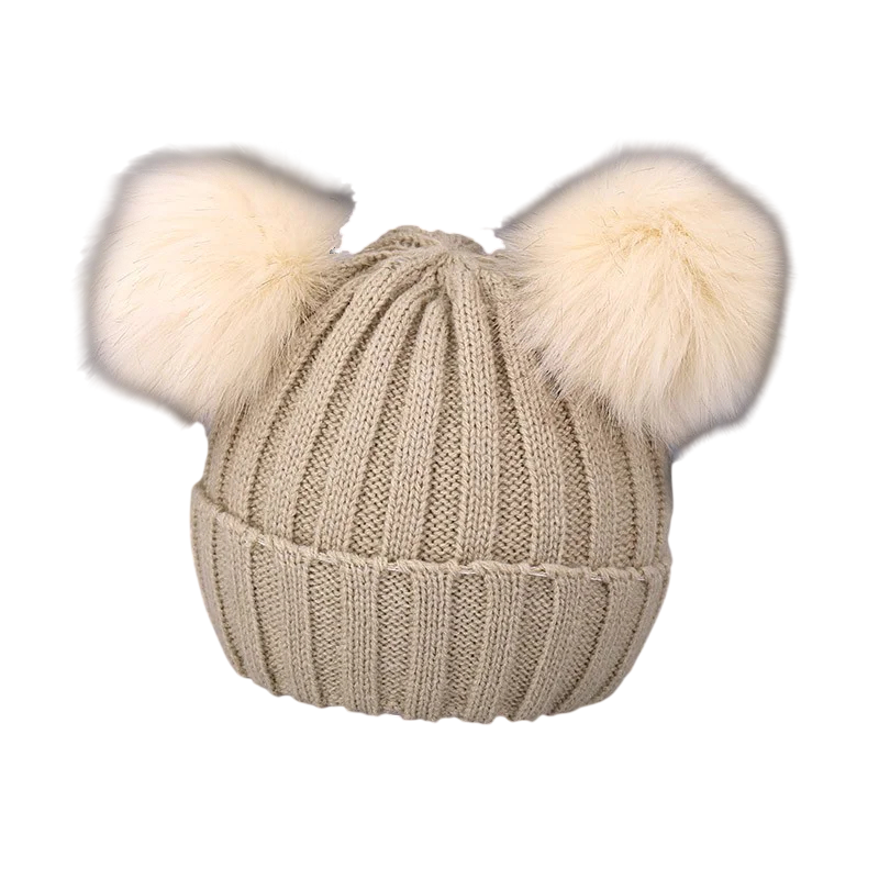 Gorro de lana para niños 1-3 años 14 x 16 cm Con grandes pompones Acrílico Lana Gorro de lana de invierno para bebés
