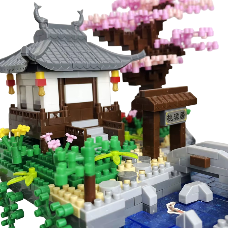 Esta extensa micro construcción representa el famoso lugar pintoresco Taohuatan, que es símbolo de la armonía de la naturaleza china, el lago y la arquitectura tradicional. El modelo destaca por sus grandes dimensiones de 18 x 18 x 22 cm, lo que le da un aspecto imponente y captura muchos más detalles que las mini construcciones comunes. La luz LED integrada proporciona una iluminación ambiental a la escena y resalta el encanto del paisaje. Montar el modelo brinda relajación, fortalece la concentración, la creatividad y permite experimentar una auténtica inspiración del patrimonio cultural de China. Este modelo decorativo es adecuado para adultos, niños, coleccionistas y amantes de la estética asiática que buscan un elemento excepcional para su interior.