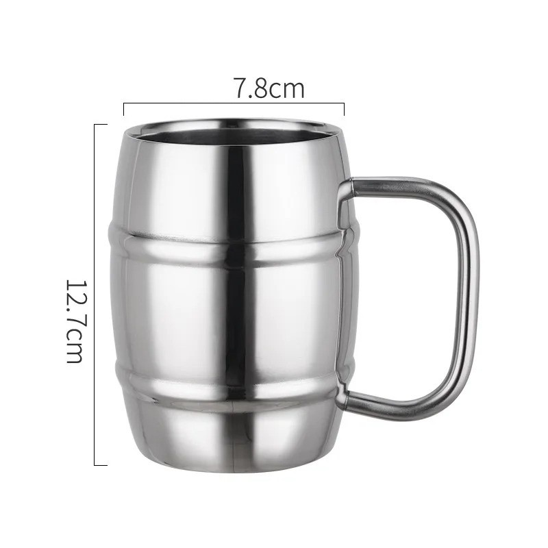 Gran taza de acero inoxidable con forma de barril y asa 500 ml 7.8 × 12.7 cm de acero inoxidable plateado para café té hogar oficina