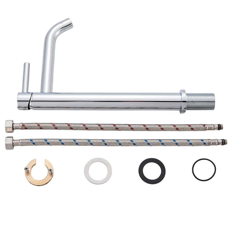 - Contenido del paquete: 1x grifo de lavabo, 2x mangueras de conexión, 1x junta, 1x kit de instalación