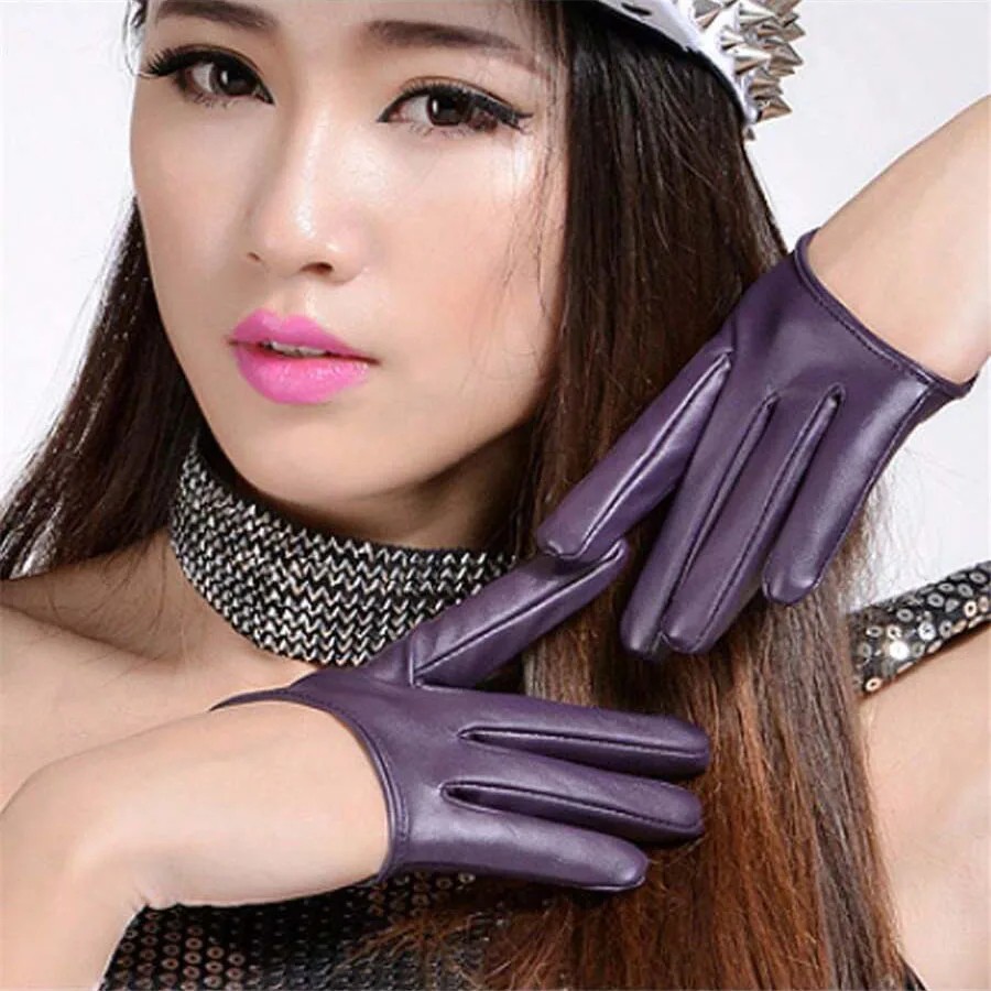 Guantes de cuero para mujer de media palma Tamaño universal Cuero sintético Poliéster Spandex Guantes cortos elegantes para un atuendo elegante