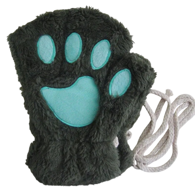 Guantes de dedo completo de mujer Tamaño universal Piel sintética Poliéster Guantes de invierno cálidos con diseño de patas de gato Suaves y cómodos guantes