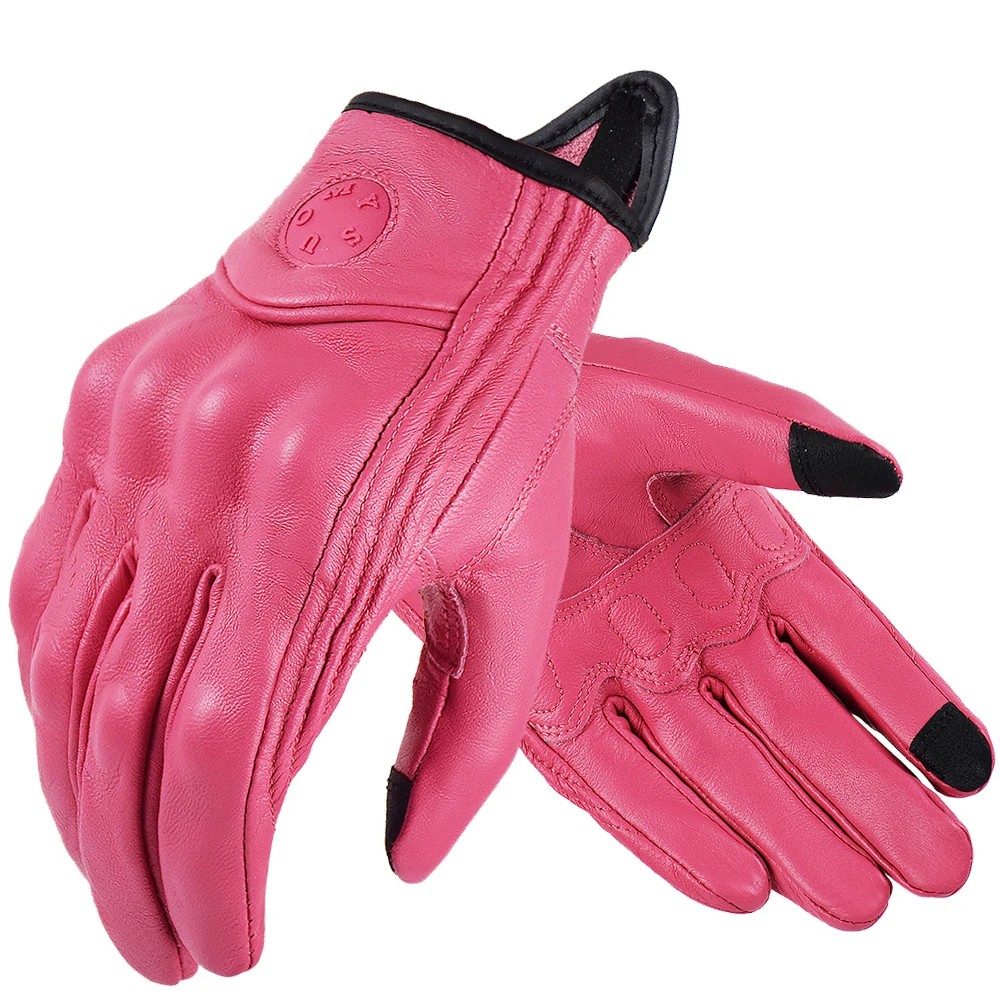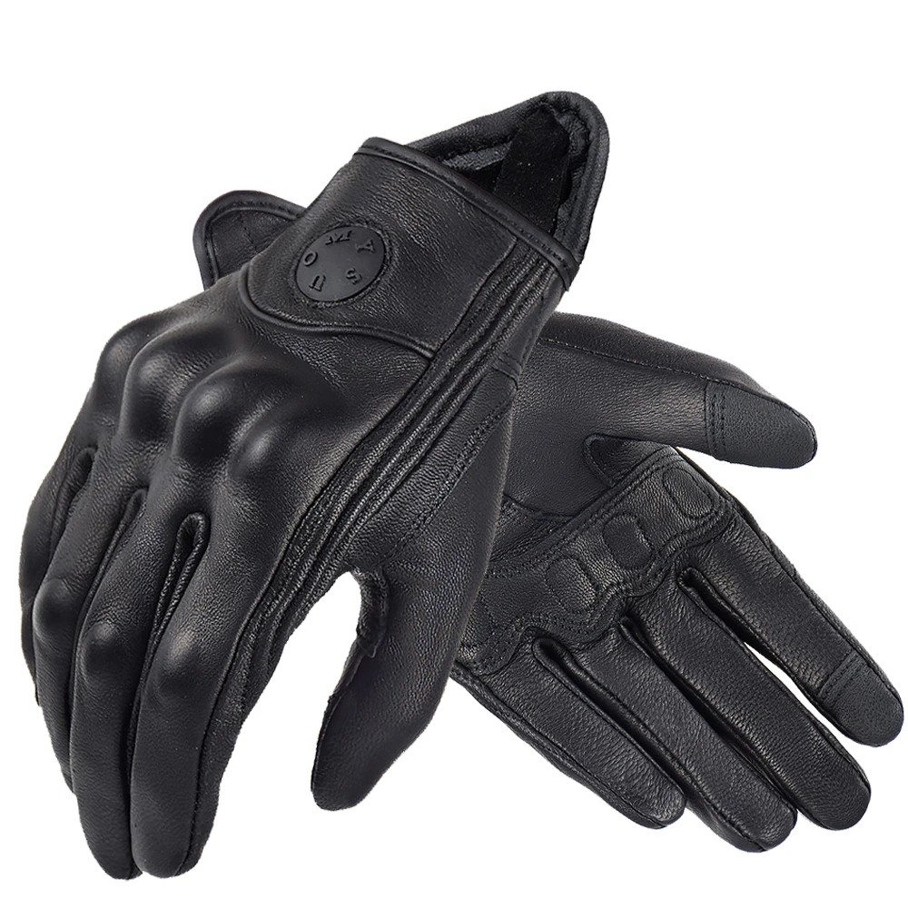 Guantes de moto de cuero retro para hombre y mujer, marrones, para todas las estaciones, resistentes al tacto, antideslizantes.