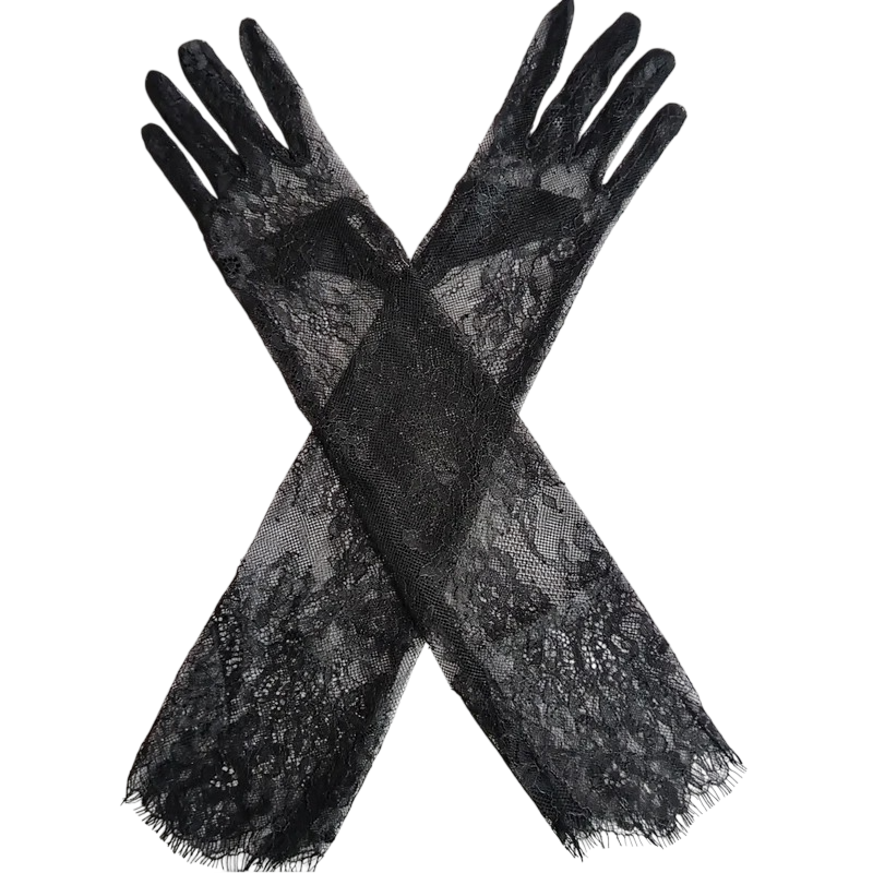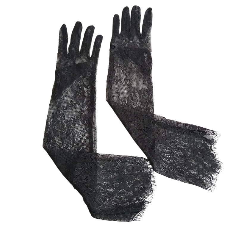 Los guantes largos de encaje para mujer de dedos completos son un accesorio que destaca por su delicado diseño y corte alargado. Gracias a su confección, cubren las manos y parte del antebrazo, creando una apariencia elegante y continua. La estructura de encaje es visualmente llamativa y, al mismo tiempo, se siente ligera.