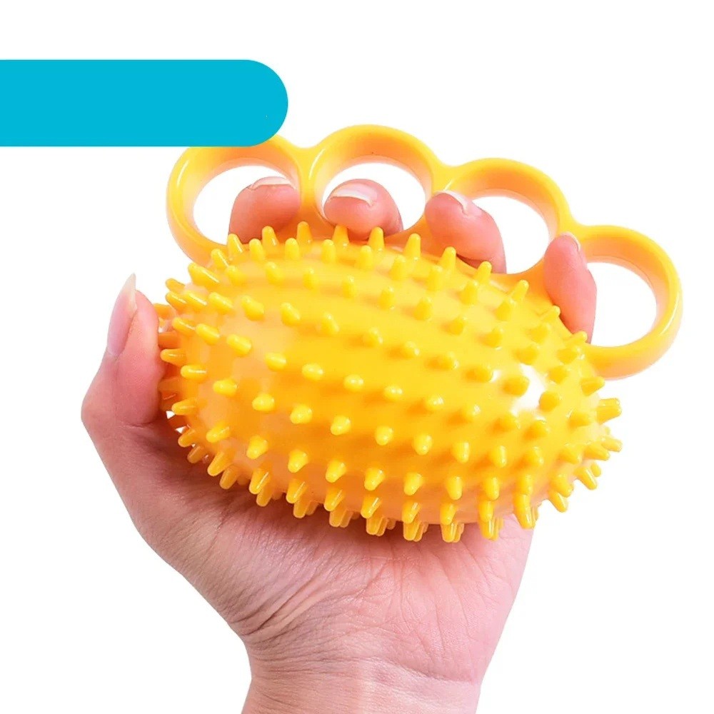 Esta bolla de masaje de silicona azul es ideal para liberar tensiones y estrés. Tiene 3 agujeros para los dedos y puntas de masaje de 2,5 cm que proporcionan un masaje intenso en manos, muñecas y antebrazos. La herramienta es ideal para uso diario, en casa o de viaje. Su diseño compacto permite un uso cómodo con una sola mano, mientras que el material de silicona es agradable al tacto y seguro para el uso diario.