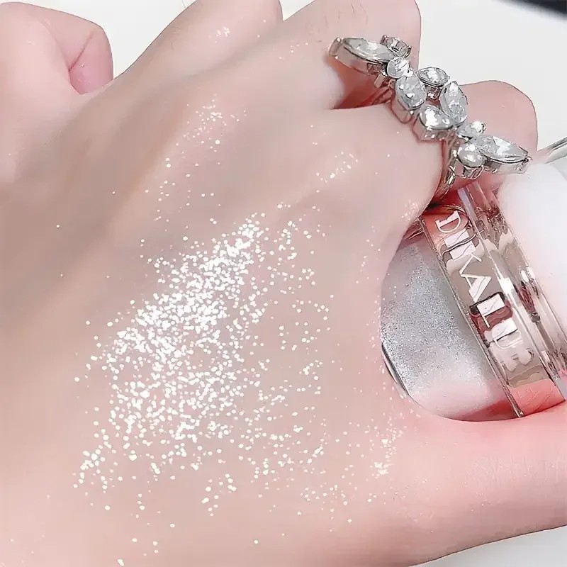 Iluminador Brillante Blanco 4,7 x 4 cm Maquillaje Compacto Iluminador con Brillos Iluminación de la Piel del Rostro Brillo Suave Cosmética