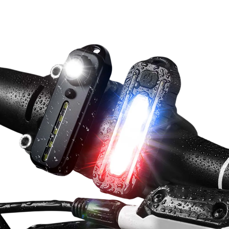 - Contenido del paquete: 2x Linterna LED, 1x soporte para manillar, clips, cable de carga USB