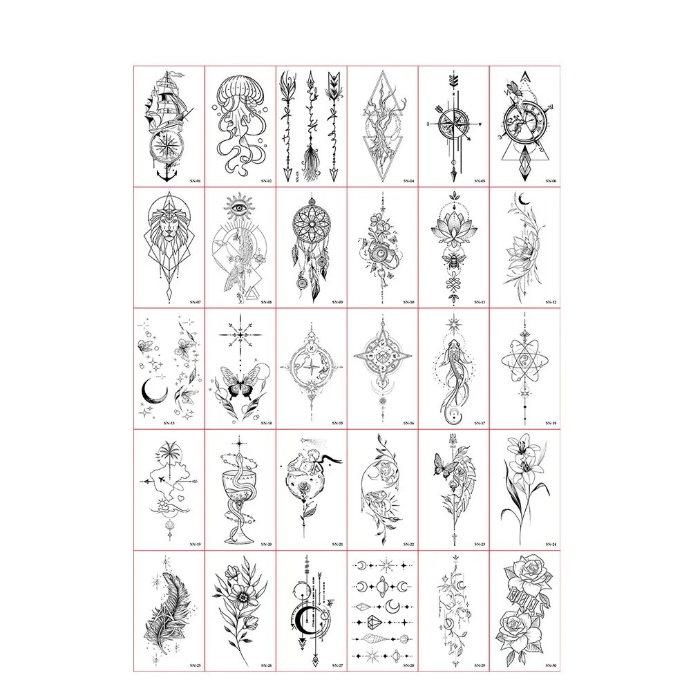 Descubre una colección única de tatuajes temporales en blanco y negro con formas geométricas originales, mandalas, atrapasueños, ornamentos florales y símbolos místicos. El juego incluye 30 hojas de 5,7 x 9,7 cm, que te permitirán expresar tu estilo personal y creatividad en cada ocasión.