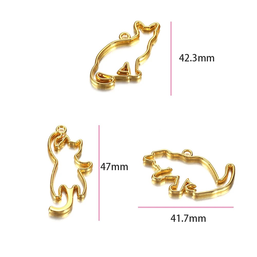 Colgantes de metal universales en forma de gatos ideales como moldes para crear joyas de epóxido, perfectos para la fabricación manual creativa. Descripción completa