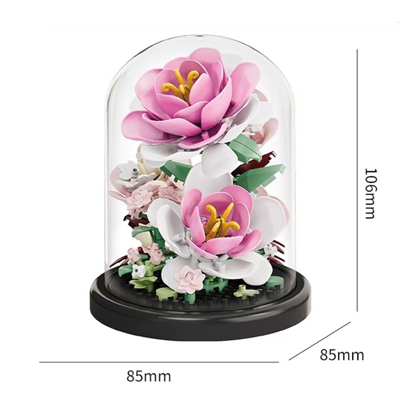 Este juego de construcción ofrece la posibilidad de crear una hermosa camelia en una maceta detallada, empaquetada en una caja transparente que permite la exhibición inmediata del modelo terminado. Gracias a las dimensiones de 85 x 85 x 106 mm, el modelo se presenta de manera elegante y es adecuado como complemento decorativo para el hogar, la oficina o la habitación infantil. El juego contiene 157 bloques de construcción micro sólidos que permiten la ensambladura precisa de pétalos realistas, hojas y una maceta firme. La camelia es conocida por su delicada belleza y símbolo de armonía, lo que la convierte en una decoración atractiva y un hermoso regalo para niños y adultos.