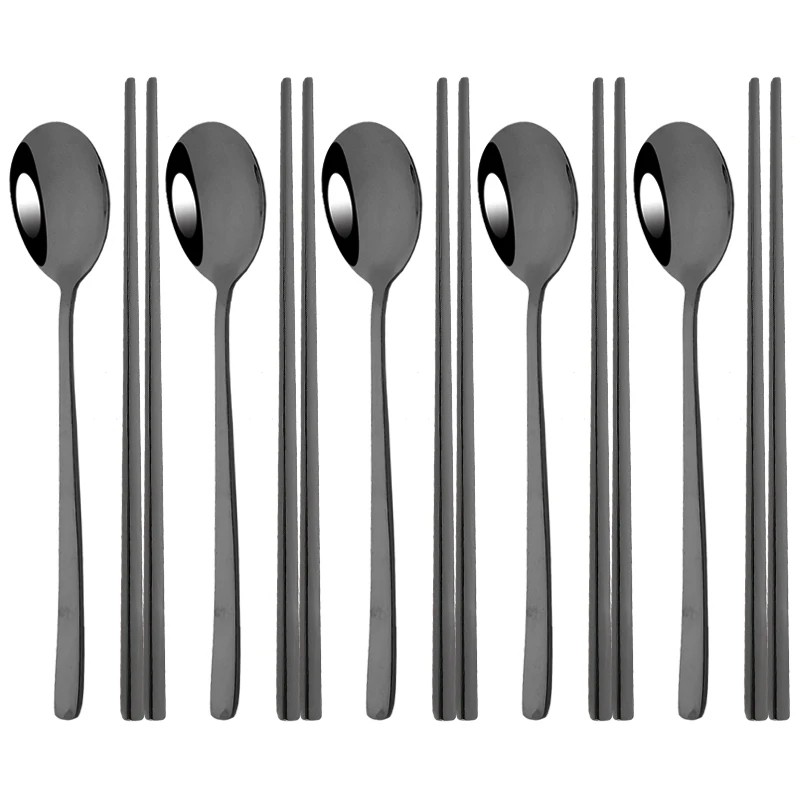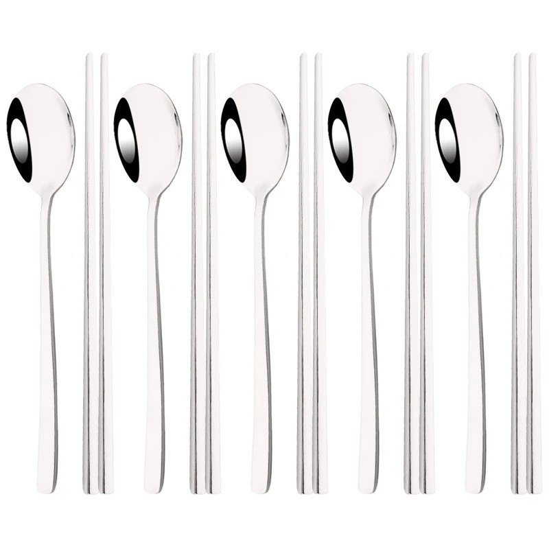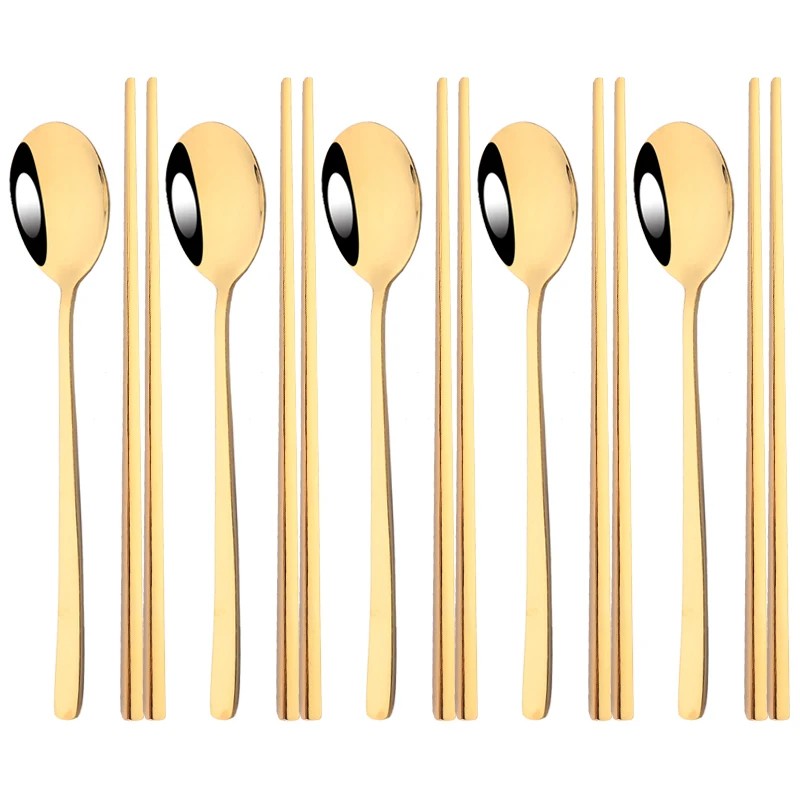 - Juego de cubiertos de 10 piezas – cuchara y palillos coreanos