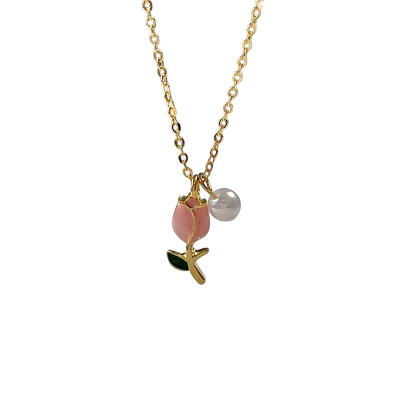 Juego de pendientes y collar de tulipán 42+16.5+5 cm Pendientes 1.4 cm Conjunto de dama con tulipán Joyas de fiesta dulces Regalo