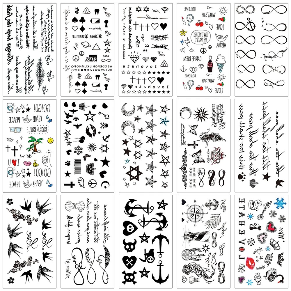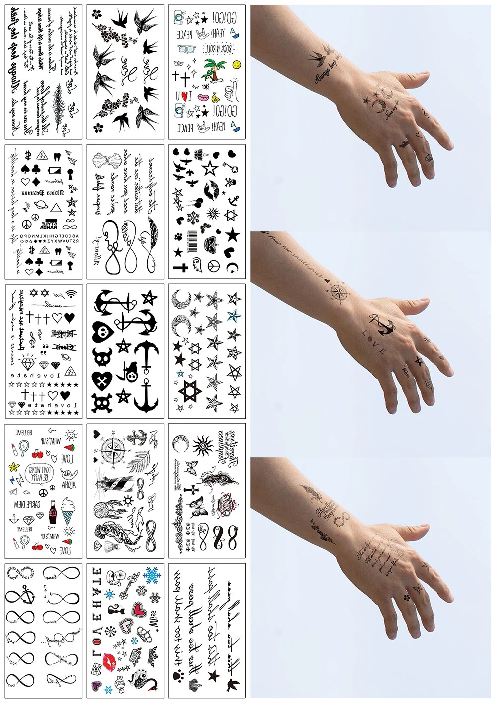 Juego de tatuajes temporales letras estrellas luna ancla pájaros y varios motivos pegatinas de tatuajes a prueba de agua para el cuerpo