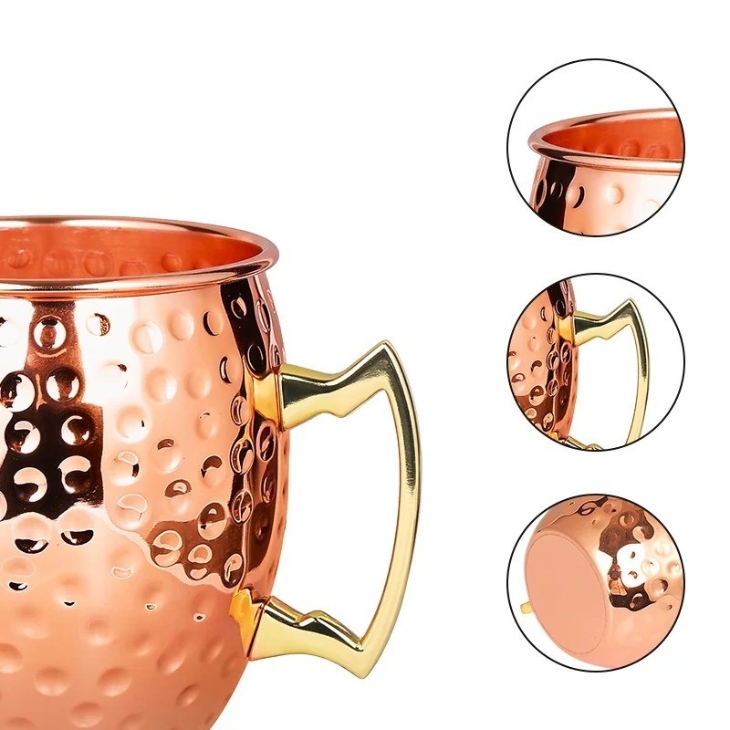 Juego de tazas de acero inoxidable con superficie martillada y asa 500 ml 6 × 10.5 cm de acero inoxidable color cobre para bebidas hogar servicio