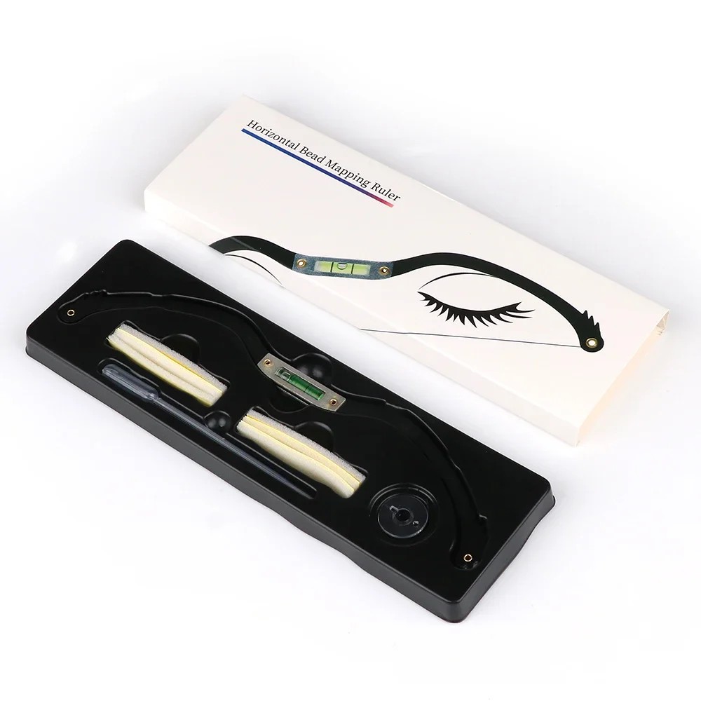 Juego para dar forma a las cejas 22,5 cm Regla metálica de mapeo con nivel de burbuja e hilo para microblading y maquillaje permanente